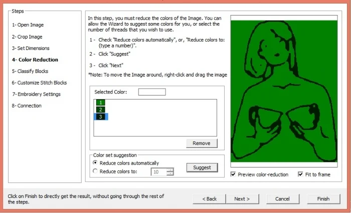 Still not sure why this worked exactly, but I've prepared digital files to take between programs before - so I have some guesses. From what I can tell, increasing the resolution to the highest possible degree is your best bet. It's in the color reduction phase that the program struggles. If you can provide more pixels AutoPunch will make more accurate distinctions between color blocks and you'll get more detail.